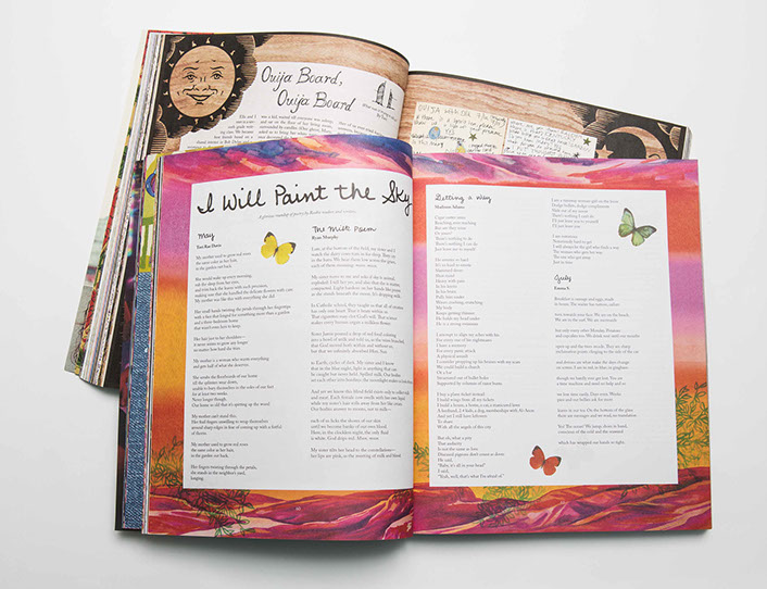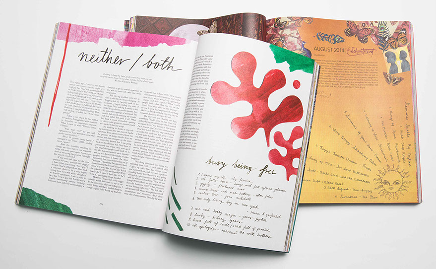 interiors include photo spreads, intricately placed artwork and essays
