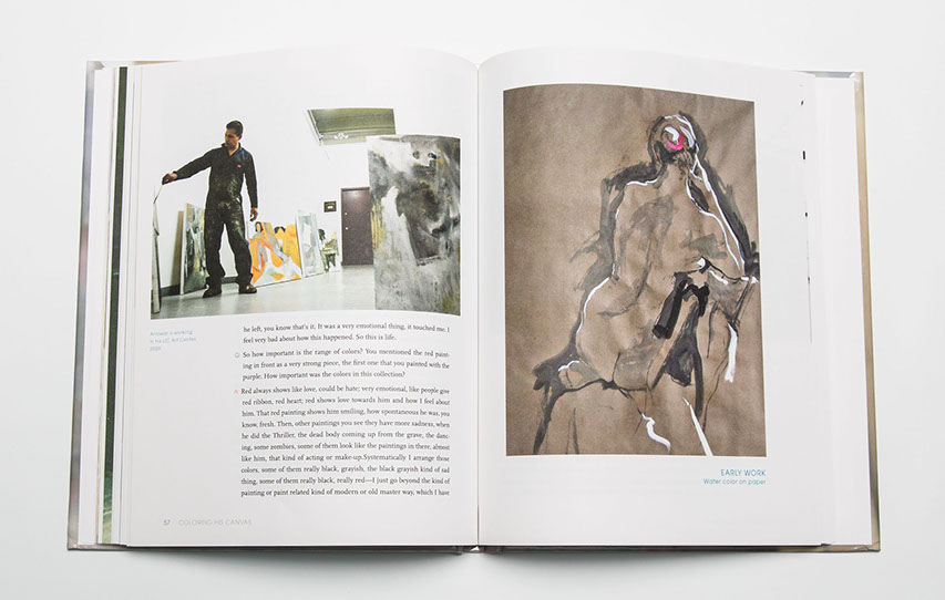 spreads of Hossain's paintings and past photos from his collection
